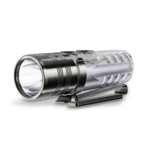 Latarkę obsługuje się jedną ręką. Do dyspozycji mamy oświetlenie główne i boczne. Każde z nich uruchamiane jest innym przyciskiem, za pomocą którego łatwo i płynnie zmieniamy tryby pracy latarki. Przełączanie pomiędzy poszczególnymi trybami odbywa się poprzez odpowiednią ilość naciśnięć właściwego przycisku latarki.