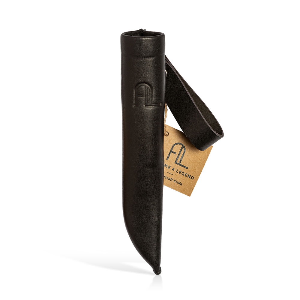 W zestawie z nożem otrzymujemy kaburę wykonaną ze skóry. Jest to klasyczne rozwiązanie pasujące stylem do narzędzia w niej się znajdującego. Drewno i skóra od zawsze stanowią idealne połączenie. Podobnie jak sam nóż, pochwa wykonana jest ręcznie, ma wysoki profil i chowa w sobie część rękojeści by lepiej zabezpieczać nóż przed wypadnięciem. Mocowana jest tradycyjnie do pasa w pozycji pionowej.