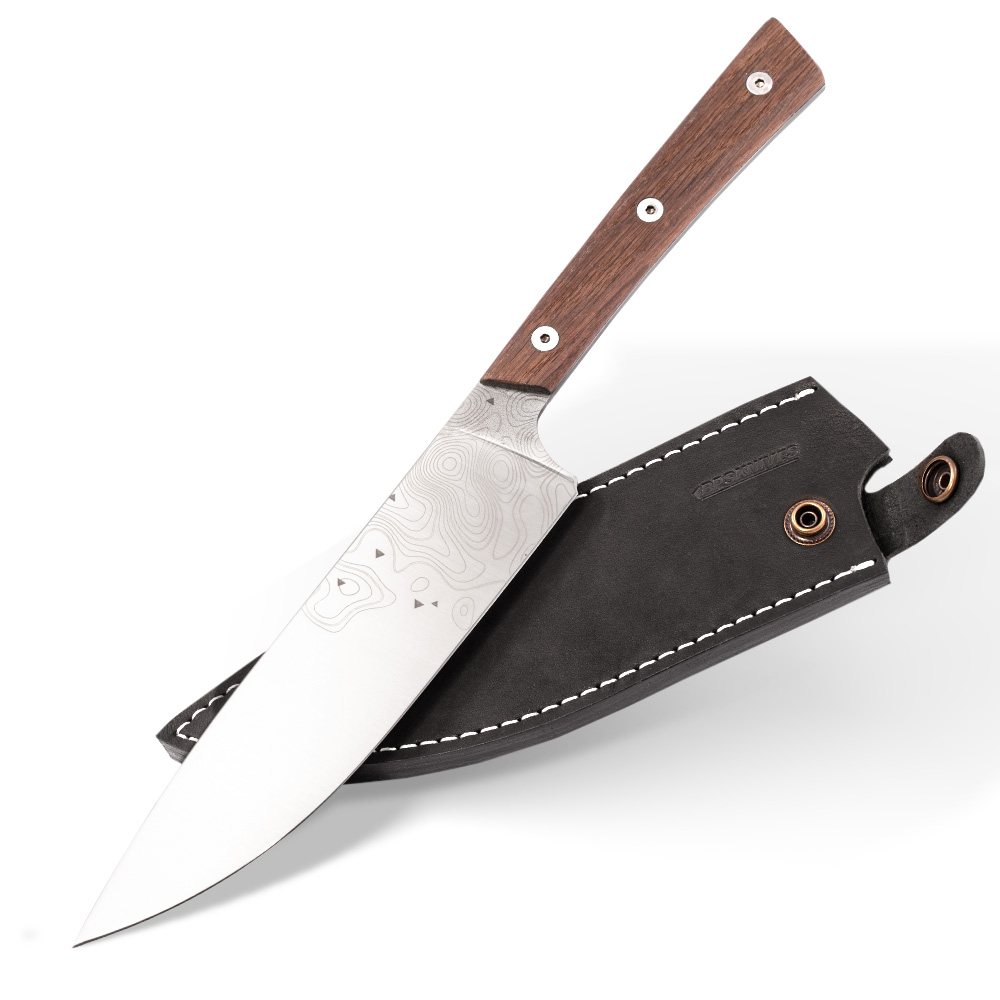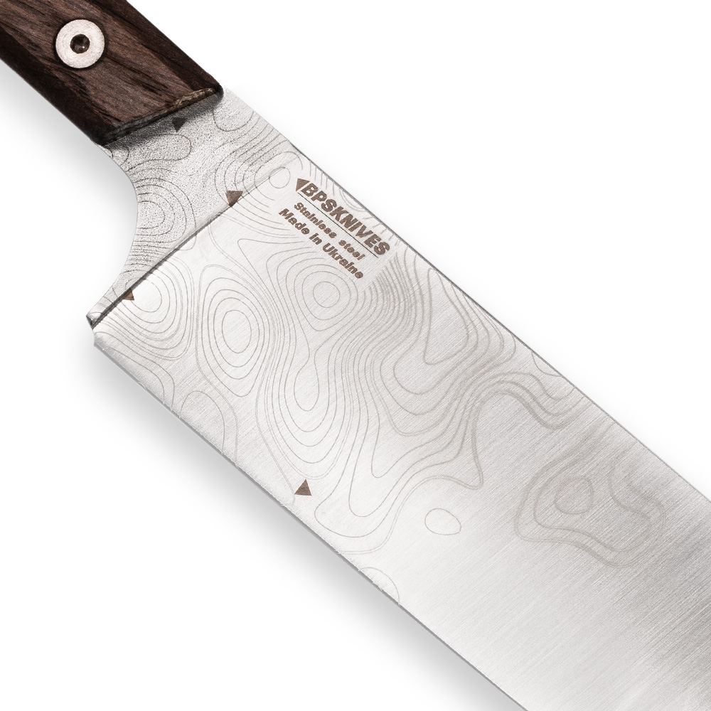 Nóż Kuchenny BPS Knives Rosemary Umber – Wersja Limitowana | Stal Nierdzewna 5Cr14MoV Drewno Dębu Bagiennego Czarna Skórzana Pochwa