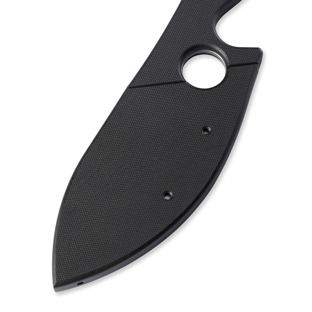 • Pochwa: czarny kompozyt G10 z dwoma akcesoriami umożliwiającymi personalizację sposobu przenoszenia: klamrą typu tek-lok oraz stalowym klipsem
