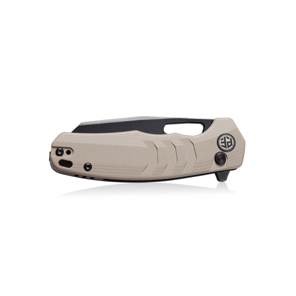 - Rękojeść: khaki G10 (beżowy), stalowe linersy, klips stalowy (Tip-Up, Deep Carry)