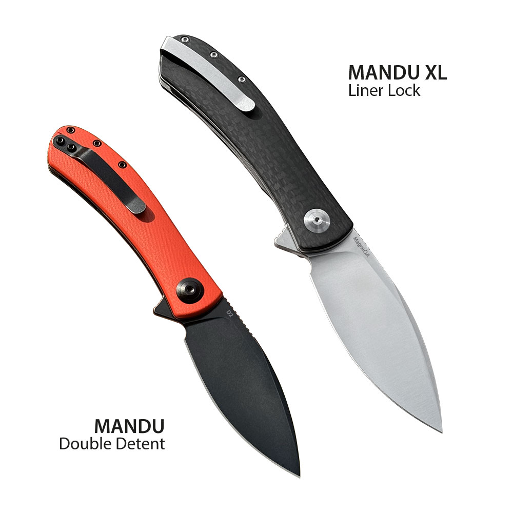 Charakterystyczne dla Mandu XL są: szerokie, przypominające kształt liścia ostrze, obła, świetnie układająca się w dłoni rękojeść, które w sumie tworzą poręczne narzędzie do codziennego użytku. Mandu XL to folder dla każdego. W porównaniu do pierwszej wersji Mandu, jest większy (215 mm | 8.46″ w stosunku do 180 mm | 7.08″), oferuje więcej „mocy” i solidności użytkowej. Mandu XL to propozycja na codzienne zadania takie jak otwierania paczek, przygotowanie przekąsek i żywności, ale również dodatkowe ostrze na wypad outdoorowy czy grilla ze znajomymi.