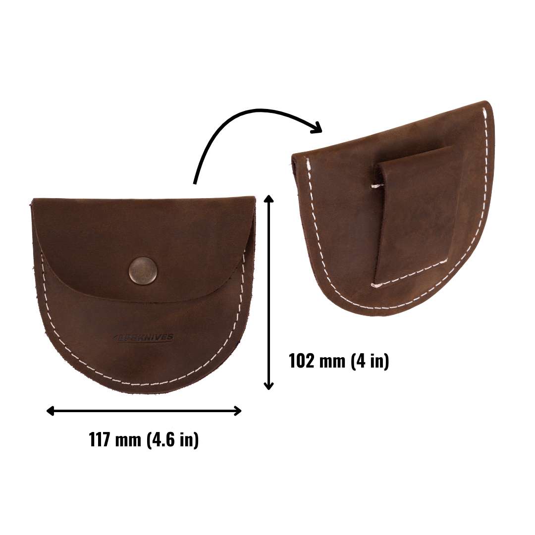 3. SKÓRZANE ETUI: Pokrowiec wykonany ręcznie ze skóry naturalnej przeznaczony do przechowywania i transportu zestawu. Zamykane na zatrzask, posiada przelotkę dającą możliwość przenoszenia na pasku lub podpięcia do plecaka czy innego elementu wyposażenia.